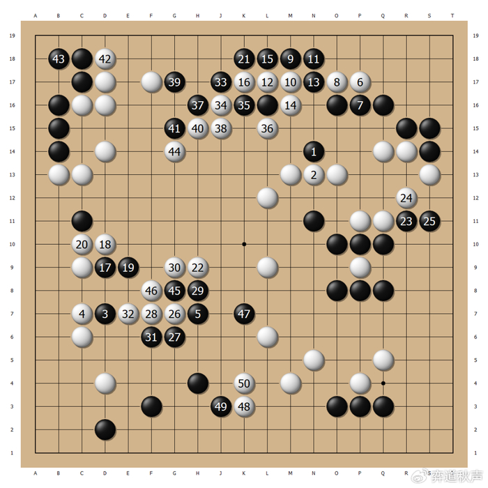 白44以下好次序,白50封锁,局势重回均衡。